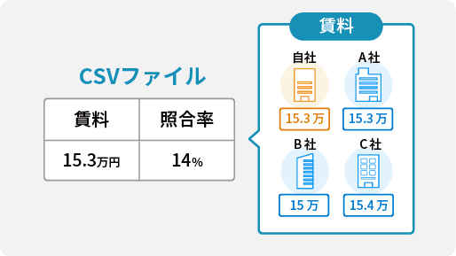 自社の物件情報と公開されている他社の物件情報を照合させ、リアルタイムで募集状況や条件変更の可能性を発見することができます。