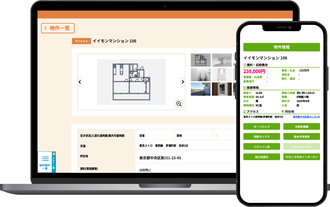 1クリックで物件情報をPDF保存!