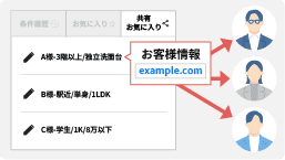 で効率的に物件提案検索履歴が残るため追客業務の手助けになります。また、履歴をお気に入り登録することで、よりスピーディな物件提案ができます。